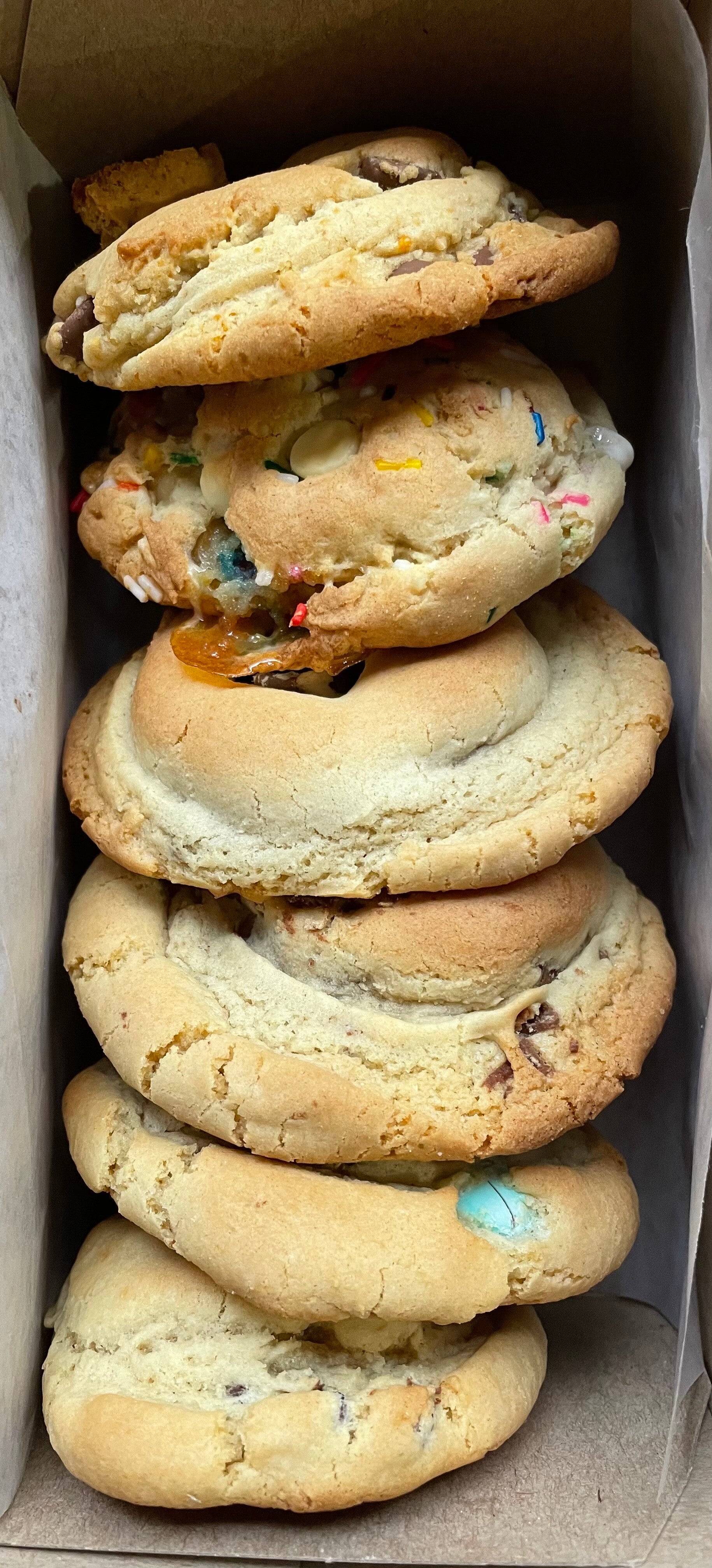 Every Sprinkle.Eat.Repeat. Bakeshop sampler box features our must-have flavors: classic chocolate chip for timeless comfort, sprinkles for a touch of fun, and s'mores for a taste of campfire nostalgia, as well as three more of our most popular flavours! Experience the perfect balance of textures and tastes in every bite.